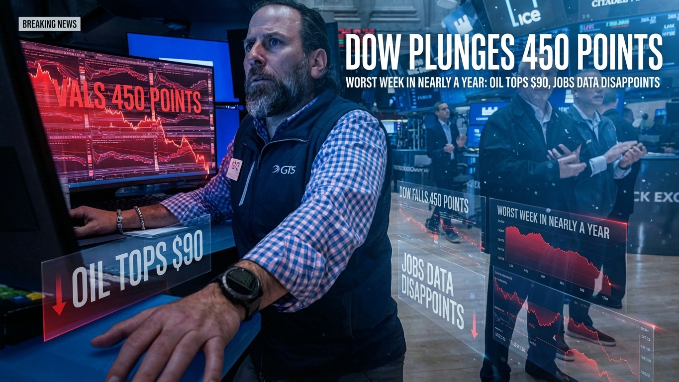 The market floor just turned ice cold. In a brutal week that has shaken investor confidence to its core, the Dow Jones Industrial Average shed over 450 points on Friday alone, finalizing its worst week in nearly a calendar year. This seismic shift wasn’t fueled by a typical earnings miss or a minor policy tweak; it was a dangerous cocktail of geopolitical upheaval and deeply flawed economic data. When West Texas Intermediate crude blasted past $90 a barrel, closing the week with an unprecedented 35% gain—the largest surge since oil futures trading commenced in 1983—the market finally blinked. For those watching the delicate balance of global finance, this week felt like watching a Jenga tower lean dangerously far to one side, waiting for a single wrong pull to send the whole structure tumbling into a recessionary abyss.